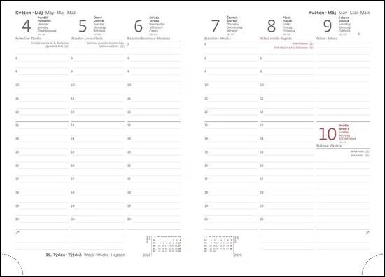 Formát diáře: 145 x 205 mm </br> Rozsah diáře: 128 stran </br> Kalendárium: týdenní </br> Diář vyrobený za použití recyklovaných materiálů