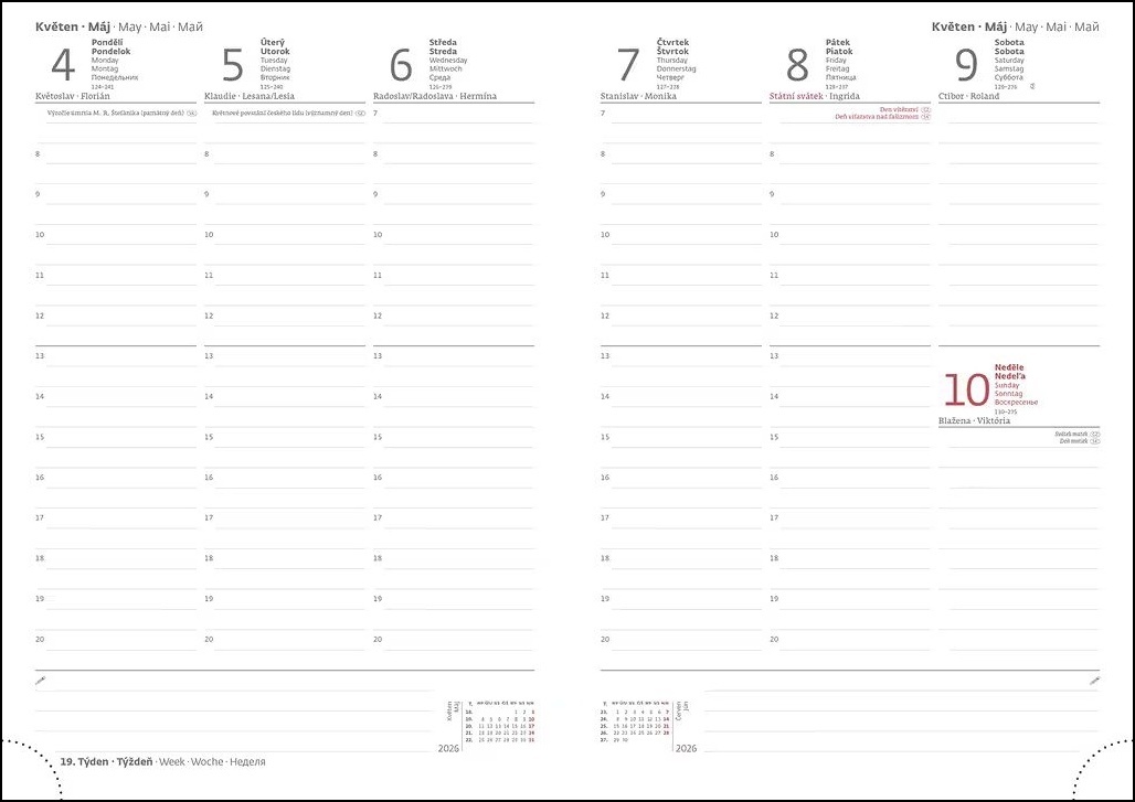 Formát diáře: 170 x 240 mm Rozsah diáře: 128 stran Kalendárium: týdenní