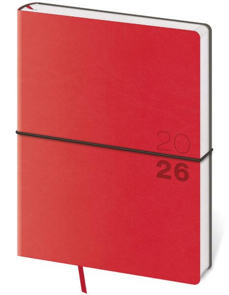Týdenní diář 2026 B6 Flexio červený s gumičkou