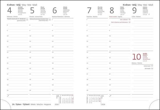 Formát diáře: 120 x 165 mm Rozsah diáře: 128 stran Kalendárium: týdenní