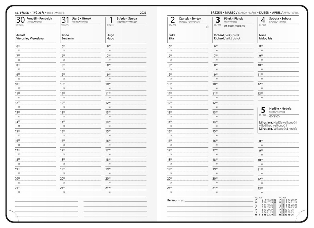 Týdenní diář 2026 Oskar Nora A5 oranžová