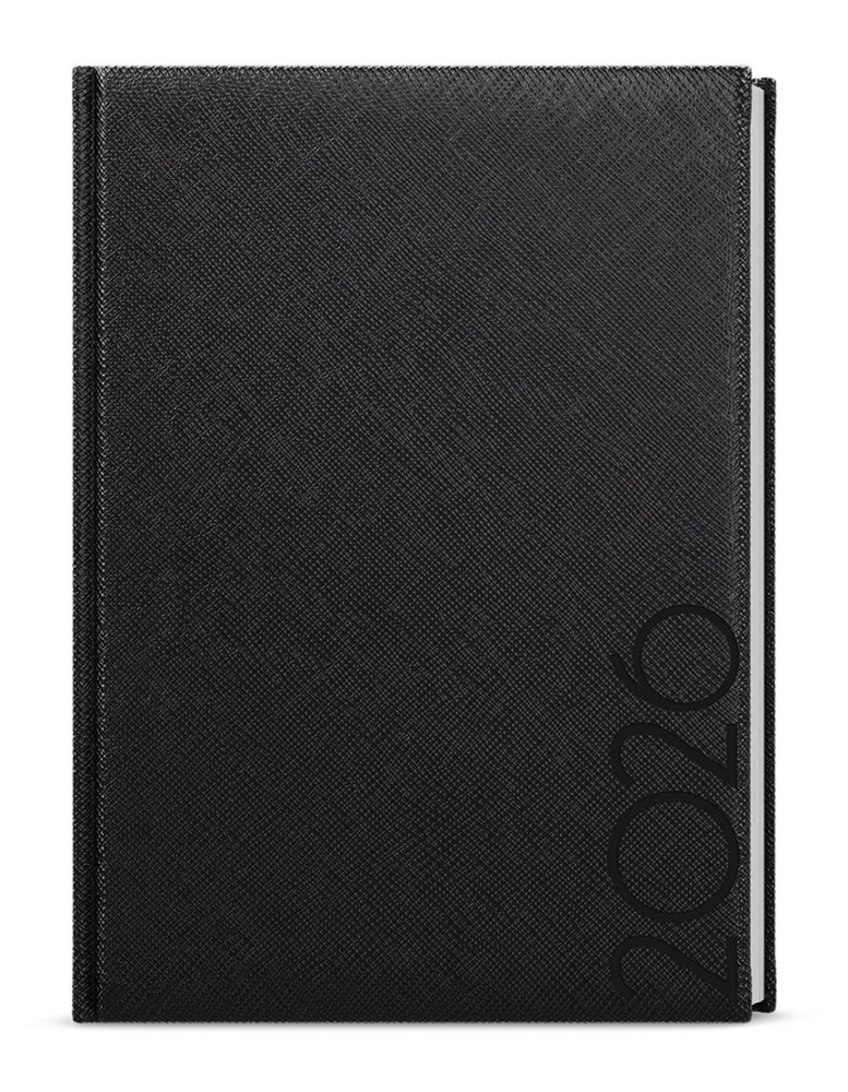 Týdenní diář v černé barvě se strukturovaným povrchem. Moderní doplněk v oblíbeném formátu. Diář má velký prostor pro poznámky a plánování.