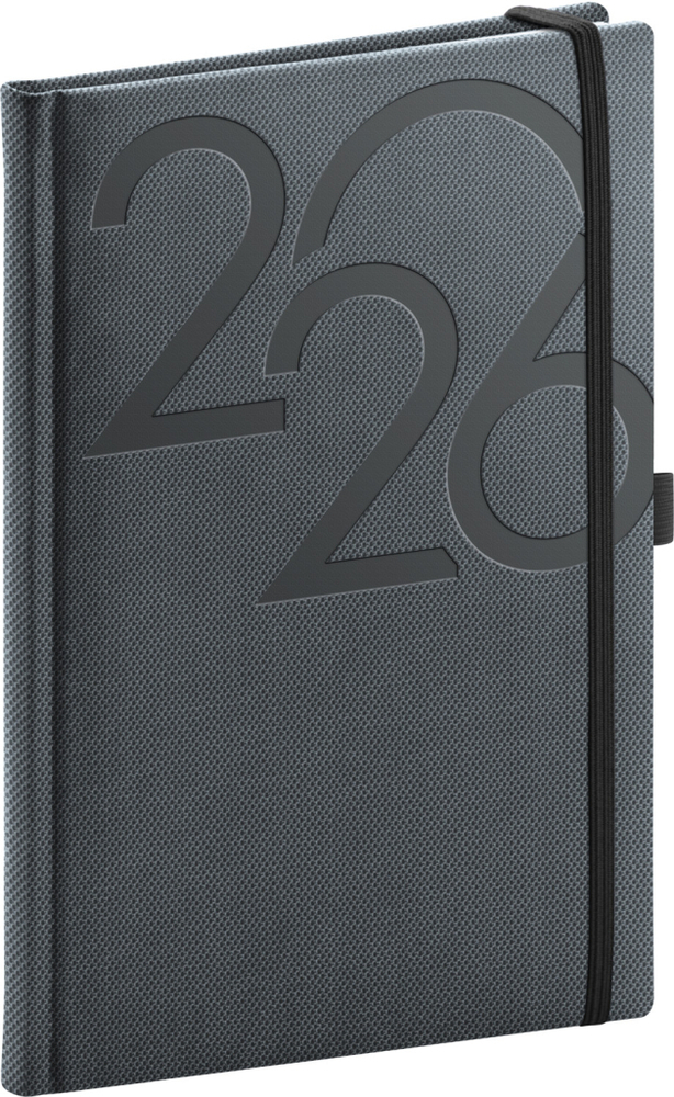 Týdenní diář Ajax 2026 v černé barvě. Jemně strukturovaný povrch s atypickým reliéfem je vhodný pro všechny typy ražeb. Diář má zakulacené rohy, poutko na tužku a elastickou gumičku. Týdenní rozvrh s česko-slovenským kalendáriem a doplňkovou angličtinou, němčinou, maďarštinou a ruštinou.