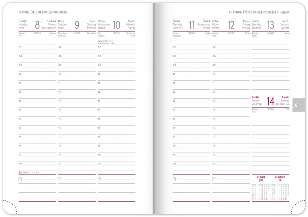 • pracovní plánovací kalendář