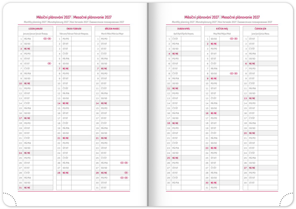 • měsíční plánovací kalendář 2027
