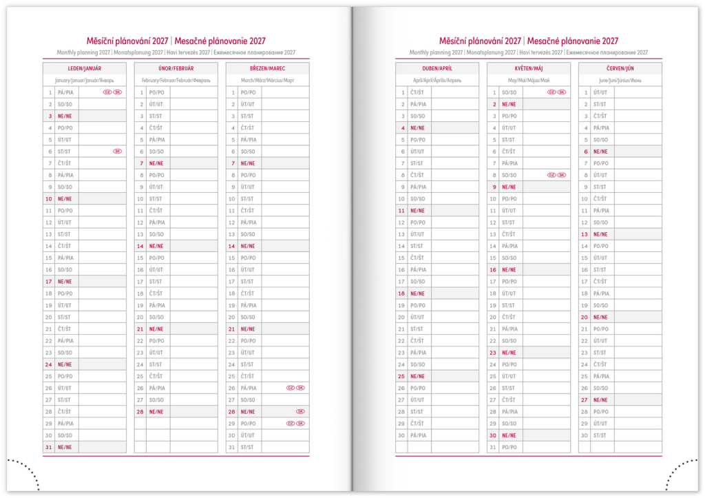 • měsíční plánovací kalendář 2027