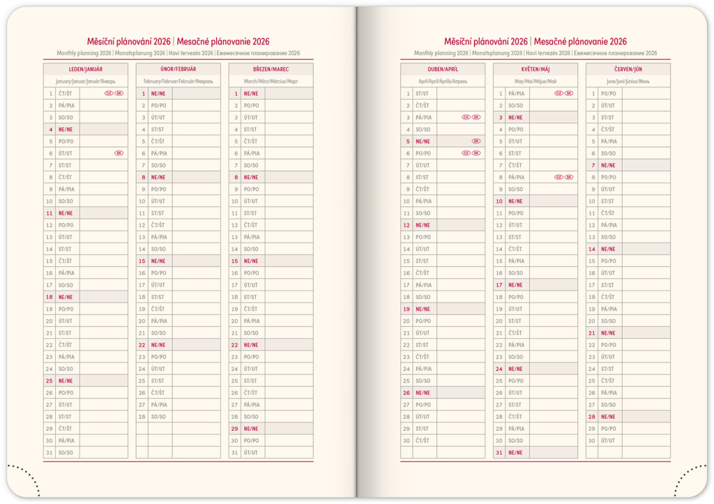 • roční plánovací kalendář 2026–2027