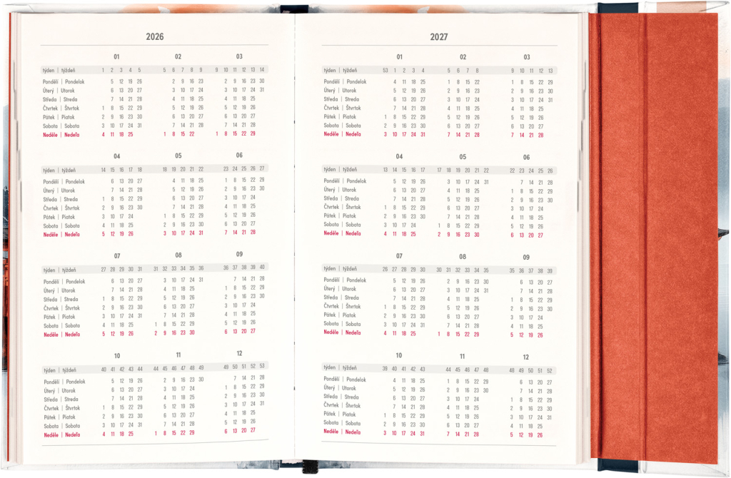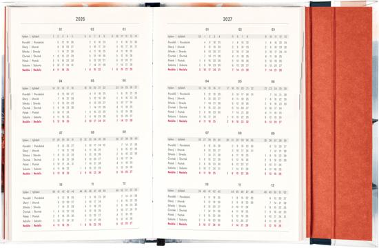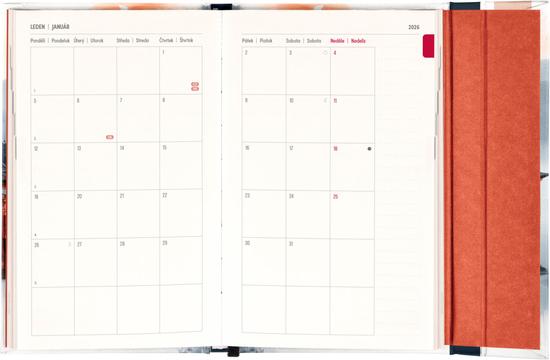 Týdenní diář s praktickým magnetickým uzavíráním je ideální volbou pro ty, kteří chtějí mít své plány přehledně pod kontrolou. Nabízí sloupcové rozvržení jednotlivých týdnů s dostatkem prostoru pro každodenní poznámky. Součástí jsou praktické měsíční přehledy, ideální pro plánování dovolených či prázdnin, a také seznam českých a slovenských svátků a jmenin. V