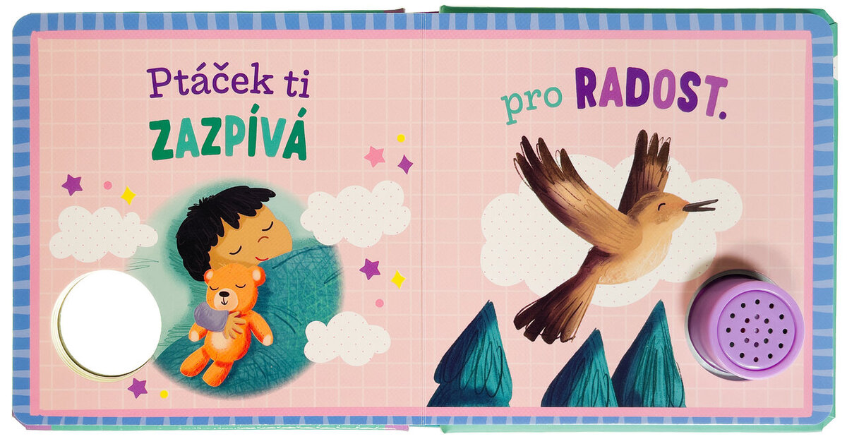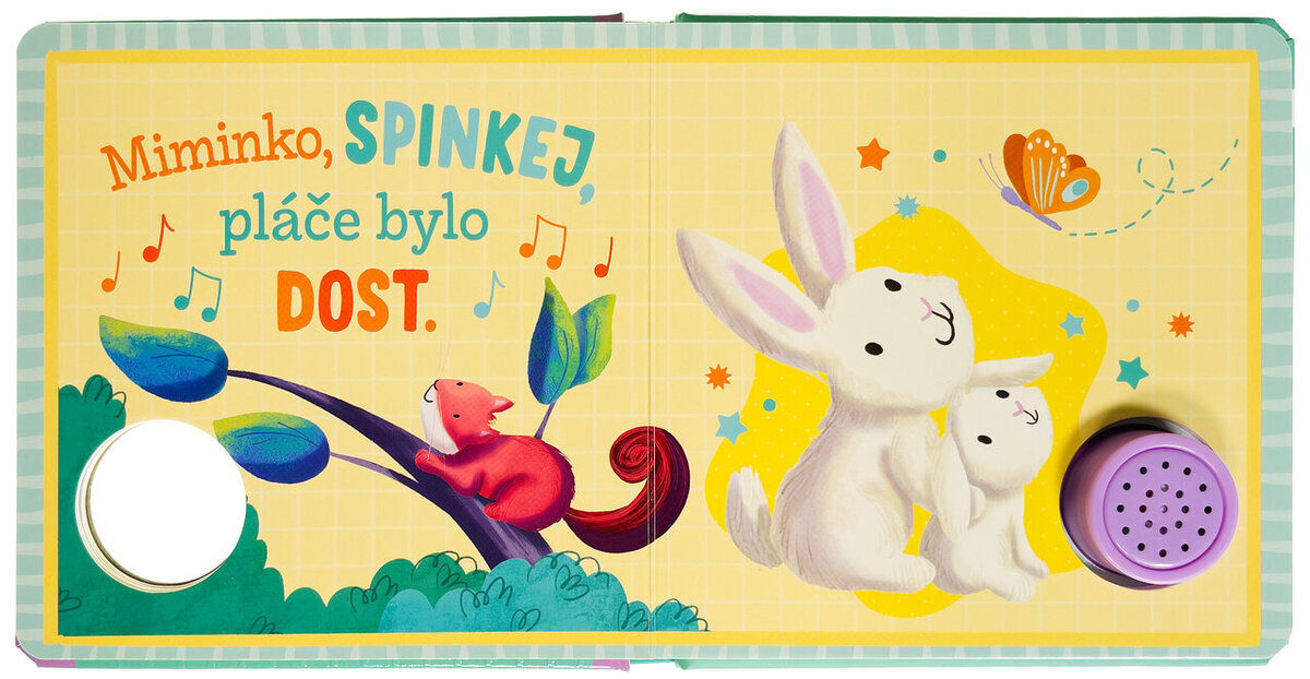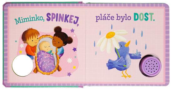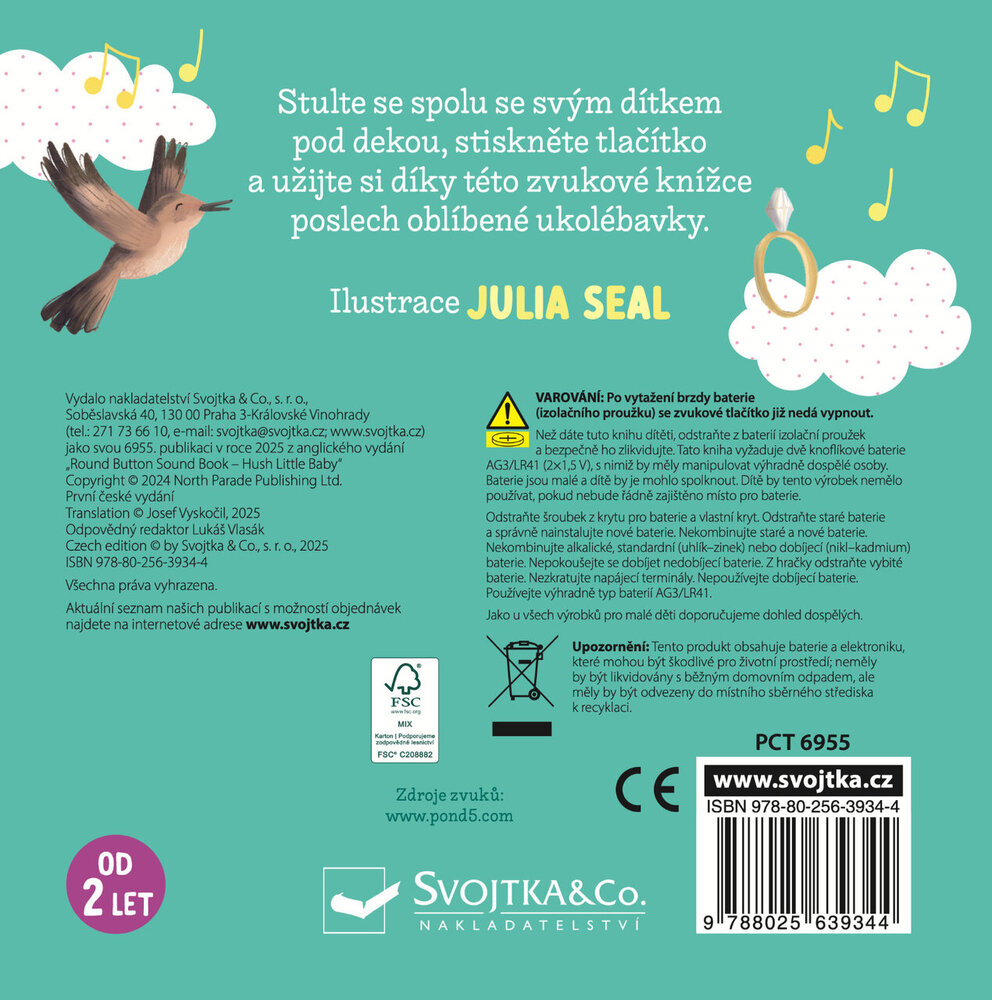 Zvukové leporelo s melodií ukolébavky známé jako "Hush, Little Baby" zve ty nejmenší děti na kouzelnou cestu do světa klidu a pohody. Stulte se se svým dítkem pod dekou, stiskněte velké tlačítko vhodné i pro malé prstíky a nechte se unášet tóny klasické a dobře známé ukolébavky, tentokrát s českým textem. Tato interaktivní kniha, určená pro miminka a batolata od 2 let, nabízí nejen poslech oblíbené melodie, ale i nádherné ilustrace, které podpoří rozvoj zrakového a sluchového vnímání. Je ideálním společníkem pro večerní usínání nebo klidné chvilky plné něžných tónů. Připravte se na snový zážitek, který pomůže vašim nejmenším usnout.