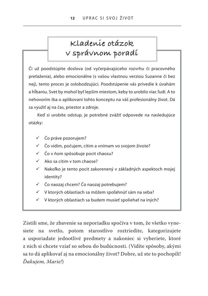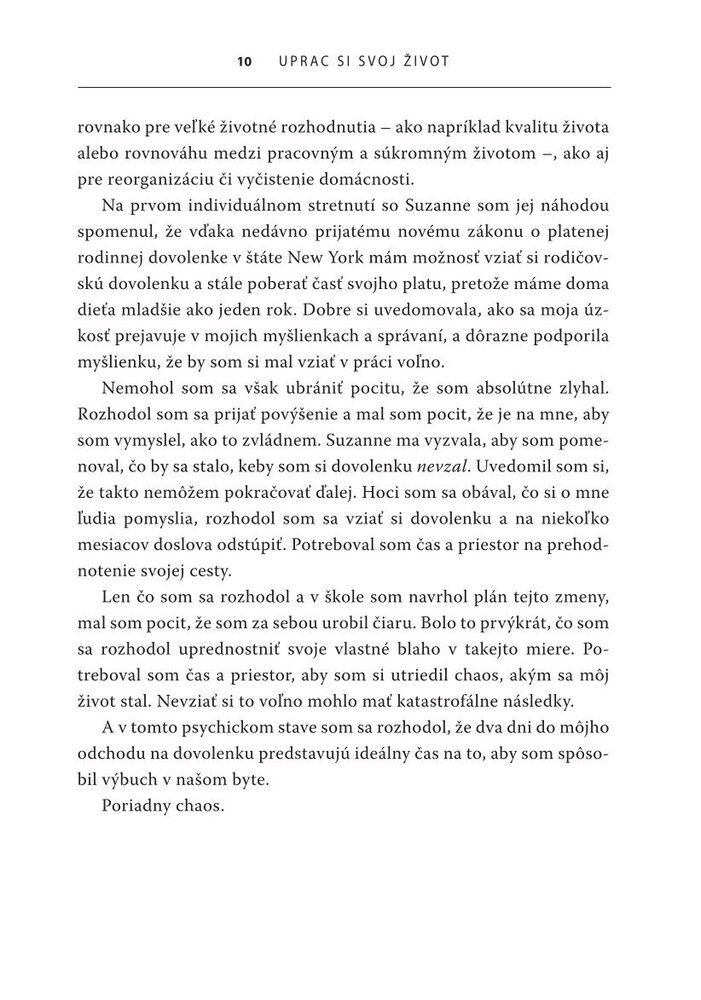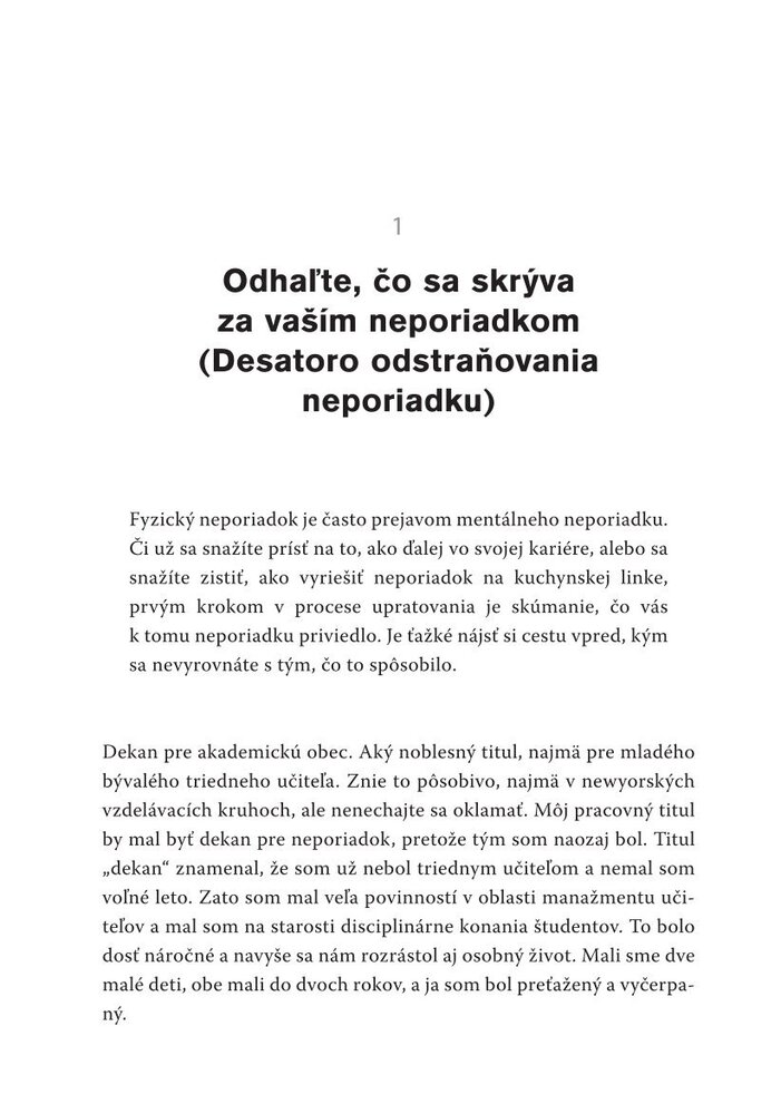 rozhodol fyzický a emocionálny neporiadok okolo seba odstrániť. V knihe
