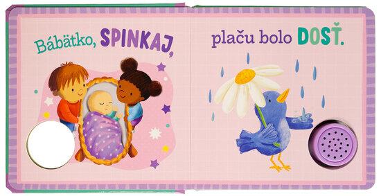 Zvukové leporelo s melódiu uspávanky známej ako "Hush, Little Baby" pozýva tie najmenšie deti na kúzelnú cestu do sveta pokoja a pohody. Schúľte sa so svojim dieťatkom pod deku, stlačte veľké tlačidlo vhodné aj pre malé prstíky a nechajte sa unášať tónmi klasickej a dobre známej uspávanky, tento krát so slovenským textom. Táto interaktívna kniha, určená pre bábätká a batoľatá od 2 rokov, ponúka nie len vypočutie obľúbenej melódie, ale aj nádherné ilustrácie, ktoré podporia rozvoj zrakového a sluchového vnímania. Je ideálnym spoločníkom na večerné uspávanie alebo pokojné chvíľky plné nežných tónov. Pripravte sa na snový zážitok, ktorý pomôže vašim najmenším zaspať.