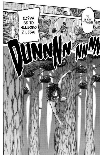 Průzkumníci vyrážejí Erenovi na pomoc do Lesa titánů, kde před nedávnem tolik z nich položilo život. Zatímco jeho přátele plánují záchrannou akci, Eren v sobě objevuje netušené schopnosti, které by mohly pomoci zvrátit situaci v jeho prospěch.