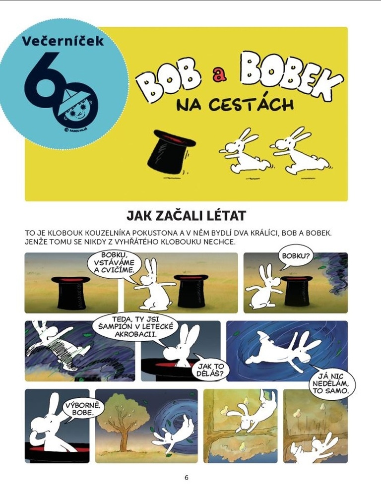Je to už neuvěřitelných 60 let, kdy se na obrazovce tehdejší Československé televize poprvé objevil tenhle střapatý klučina v papírové čepici. Dodnes si každý den přilétne odněkud z hvězdné oblohy, hezky se ukloní, způsobně pozdraví DOBRÝ VEČER a očička mu při tom také září jako malé hvězdičky. Čiperně vyběhne po schodech, skočí na houpacího koníka, přeskočí do autíčka a nakonec se vyhoupne na vysokou jednokolku. A při tom všem neustále rozhazuje psaníčka s nápisem VEČERNÍČEK. Po skončení večerní pohádky se zase pěkně ukloní, popřeje dětem DOBOU NOC a odlétá zpět ke hvězdám, možná do říše snů a fantazie…