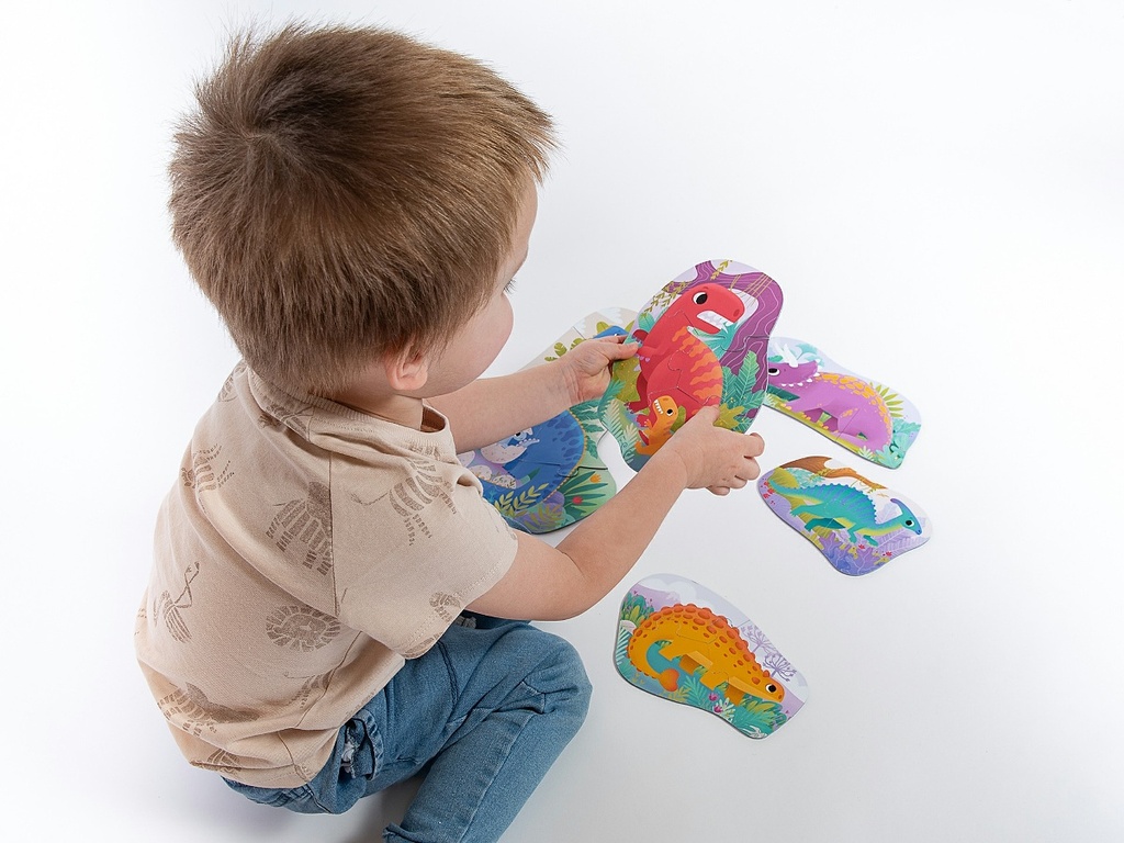 Už nejmenší děti mohou sestavovat puzzle a trénovat tak jemnou motoriku i obrazotvornost. Nejprve dinosaury skládají ze dvou, pak ze tří a nakonec až ze sedmi dílků.