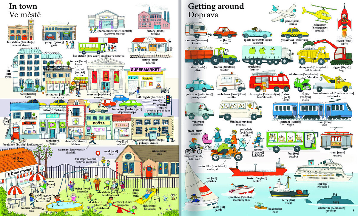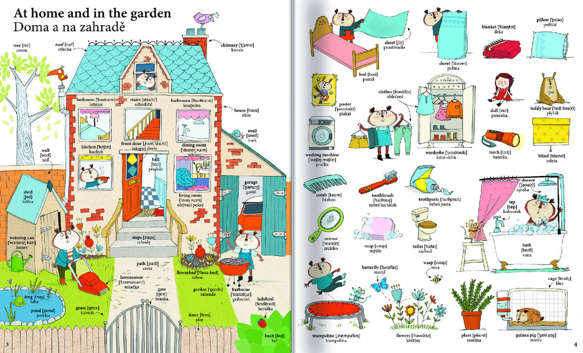 Tato kniha plná propracovaných obrázků obsahuje více než tisícovky každodenních slov ze všech oblastí, s nimiž se dítě běžně setkává. Propojení obrázku se slovem v češtině a angličtině včetně výslovnosti vede ke snadnému zapamatování cizího jazyka, a tím přirozeně rozšiřuje slovní zásobu dítěte.