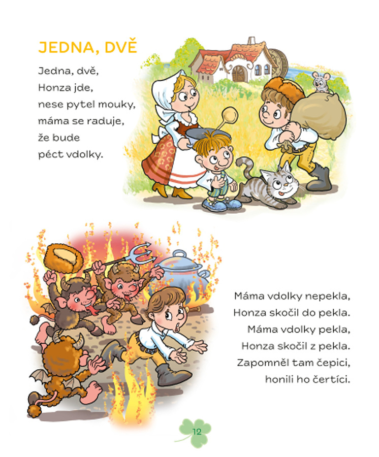 Sbírka nejznámějších lidových říkadel, které provázejí české děti po mnoho generací. Rytmické básničky a jejich jednoduché rýmy přímo vybízí malé posluchače k nápodobě a cvičení paměti. Roztomilé a vtipné ilustrace všechny známé verše doslova roztančí.
