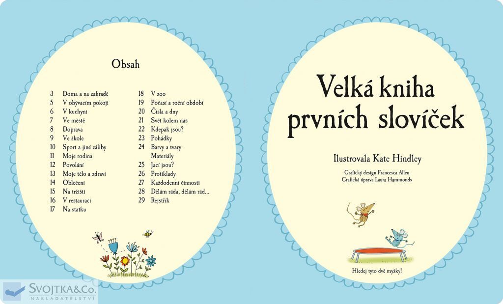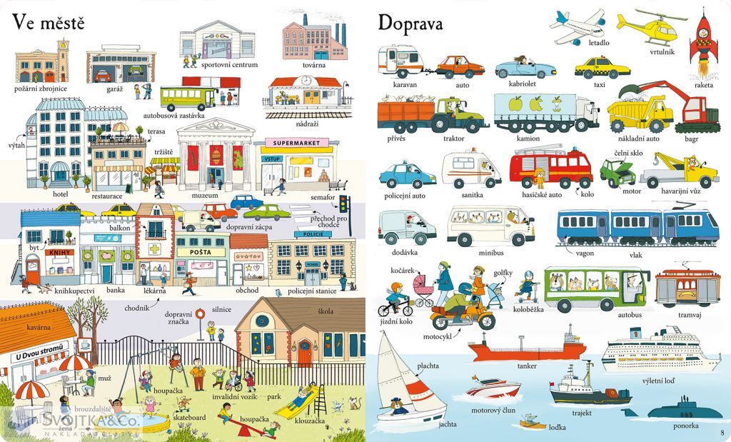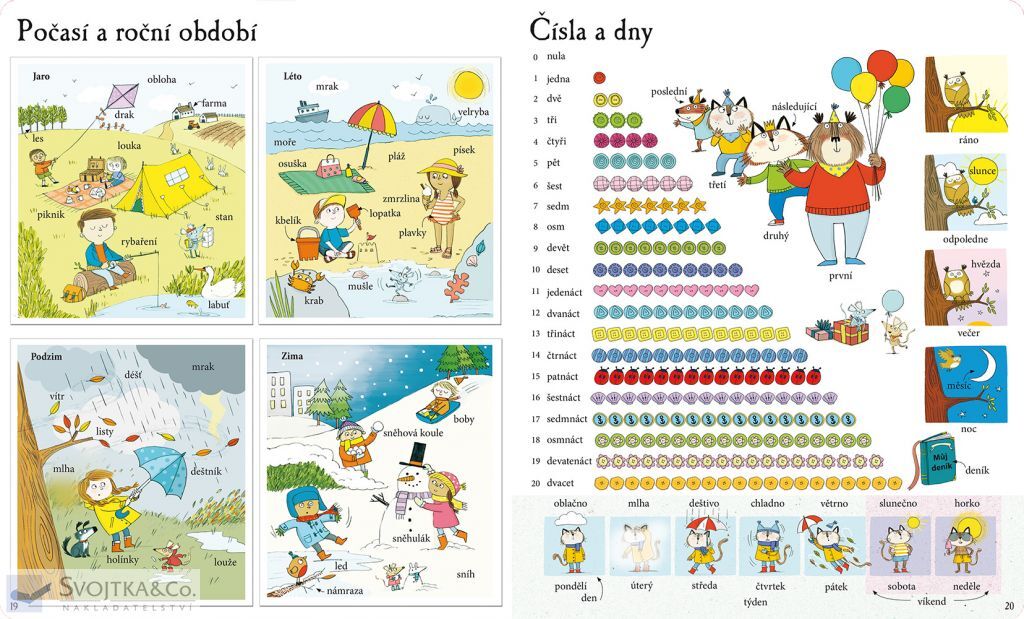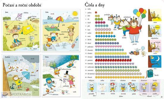 Tato kniha plná propracovaných obrázků obsahuje soubor více než tisícovky každodenních slov ze všech oblastí, s nimiž se dítě běžně setkává. Propojení obrázku se slovem vede ke snadnému zapamatování, a tím přirozeně rozšiřuje slovní zásobu dítěte.