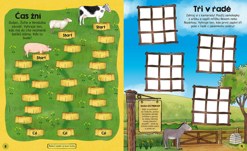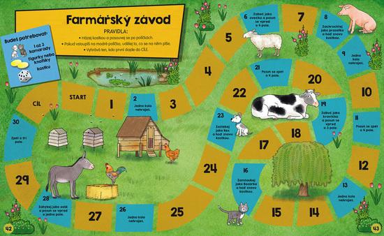 V této vesele ilustrované knize na tebe čeká mnoho aktivit, pořádná hromada samolepek a obrázky k vytlačení. Z obrázků si můžeš sestavit vlastní farmu plnou nových zvířecích kamarádů. V této hravě ilustrované knize se spoustou aktivit malí zvědavci navštíví farmu a blíže poznají její obyvatele. Děti se dozvědí o svých nových kamarádech například i to, co mají rádi či neradi. Tak neváhejte a pojďte se pořádně zabavit na farmu, ale také procvičit jemnou motoriku a pozorovací schopnosti.