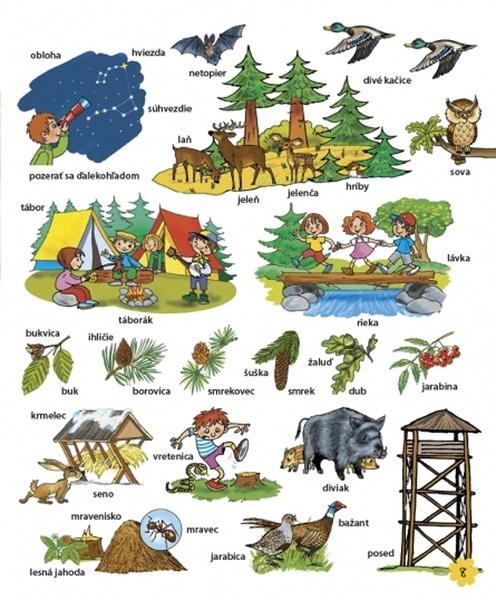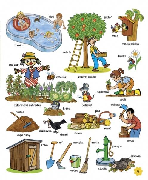 Kniha plná pútavých farebných obrázkov, ktoré zachytávajú slová z každodenného života. Slová sú usporiadané do tém, v ktorých rodičia prirodzeným spôsobom zoznámia svoje deti s novými slovami.