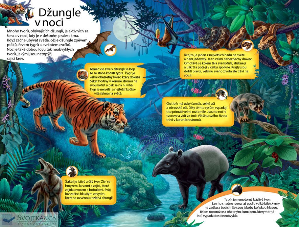 Ve Velké knize zvuků se děti nejen dozvědí spoustu informací o mnoha zvířatech, ale díky zvukovému modulu s více než 50 zvuky se je také naučí rozpoznávat.