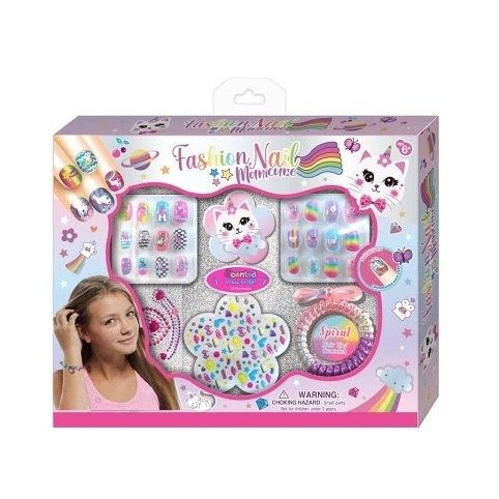 Velká sada s nehtovým studiem. V balení naleznete nalepovací barevné nehty, pilníček, ozdobné kamínky, spirálovou gumičku. Vhodné pro děti do 6ti let.
