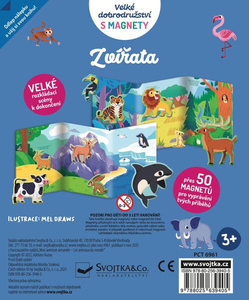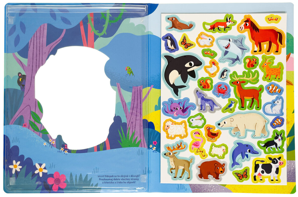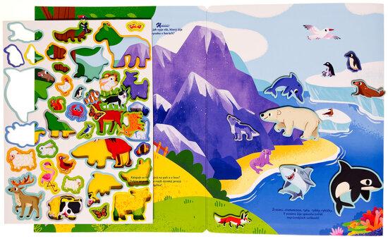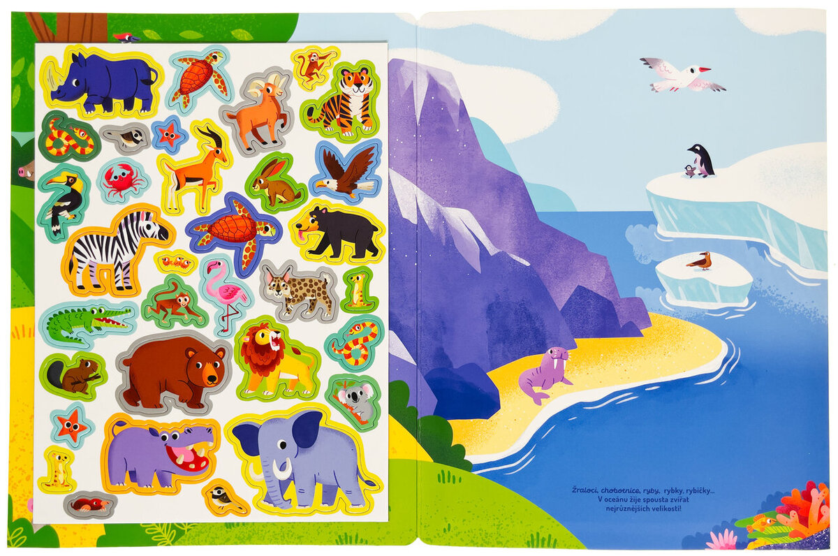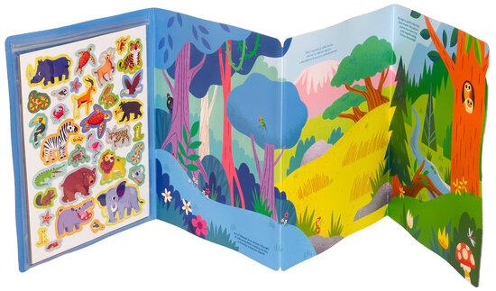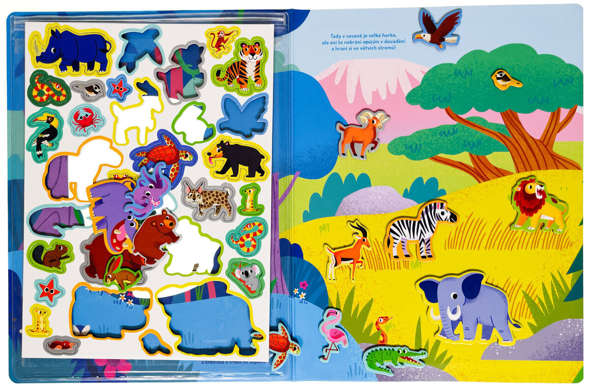 Zahraj si v této rozkládací knize vlastní příběhy se zvířaty - nyní ve větším formátu! Po roztažení měří kniha 300 x 920 mm a nabízí dvě velké scény k doplnění více než 50 barevnými magnety. Děti se dozvědí zajímavé informace o zvířatech v jejich přirozeném prostředí a zároveň si při hře s magnety rozvíjejí představivost, jemnou motoriku i slovní zásobu.