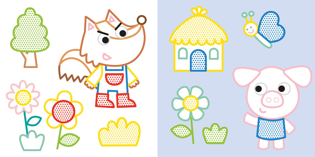 Vyfarbovanie a nalepovanie v jednom! Tieto milé veľké penové samolepky sú špeciálne vytvorené pre malé pršteky vašich detičiek. Umožnia im rozvíjať jemnú motoriku a objavovať svet zvierat a vecí, ktoré sa nachádzajú okolo nás. Vybotkované plôšky sú určené pre samolepky a farebné obrysy napovedia dieťatku aký odtieň má pri vyfarbovaní použiť.