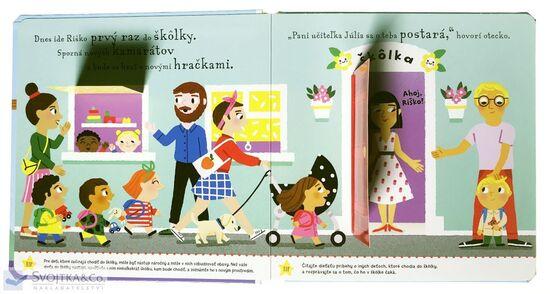 Krátky príbeh o Riškovi opisuje jeho prvý deň v škôlke. Kniha pomôže nielen deťom, ale najmä ich rodičom. Na každej dvojstrane nájdete radu, ako pripraviť svoje dieťa na to, že začne chodiť do škôlky. Pripravte ho na to, čo ho tam čaká, niekoľko ráz s ním škôlku navštívte a zoznámte ho s novým prostredím. Venujte pozornosť jeho pocitom a pomôžte mu s touto zmenou