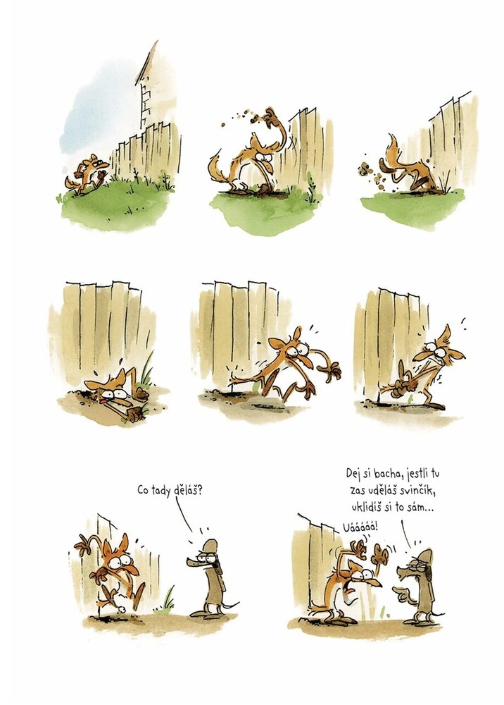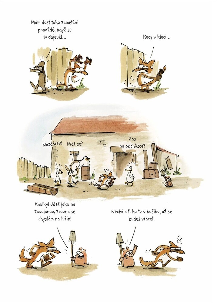 Frustrovaný a hladový lišák, přežívající jen na tuřínové dietě, se nechá přemluvit ke geniálnímu plánu, jak slepice přelstít – ukrást jim vejce, vysedět je a vykrmená kuřátka si dát k obědu. Jenže to, co v teorii zní jednoduše, se v praxi ukáže jako velká komplikace a v komiksu Benjamina Rennera také jako nesmírně vtipné dobrodružství!