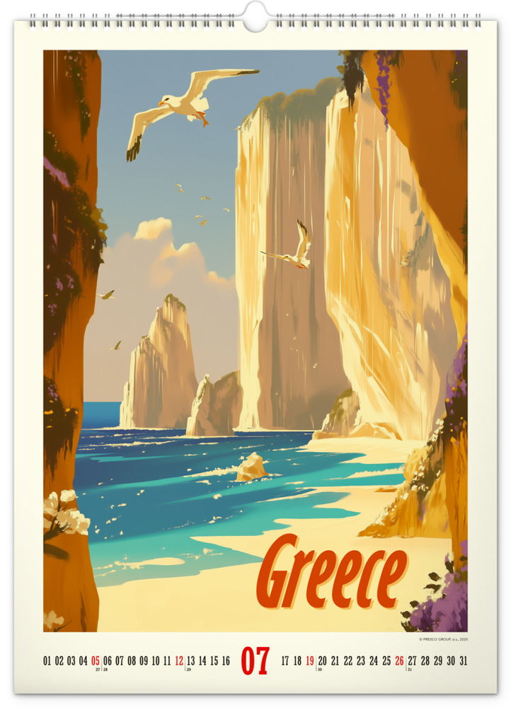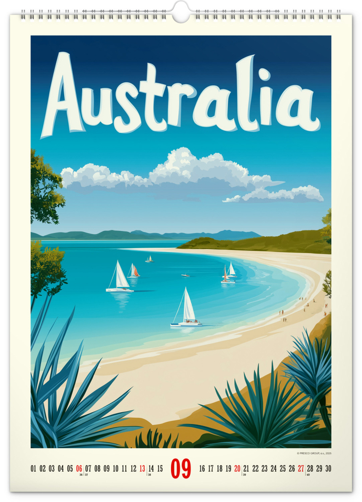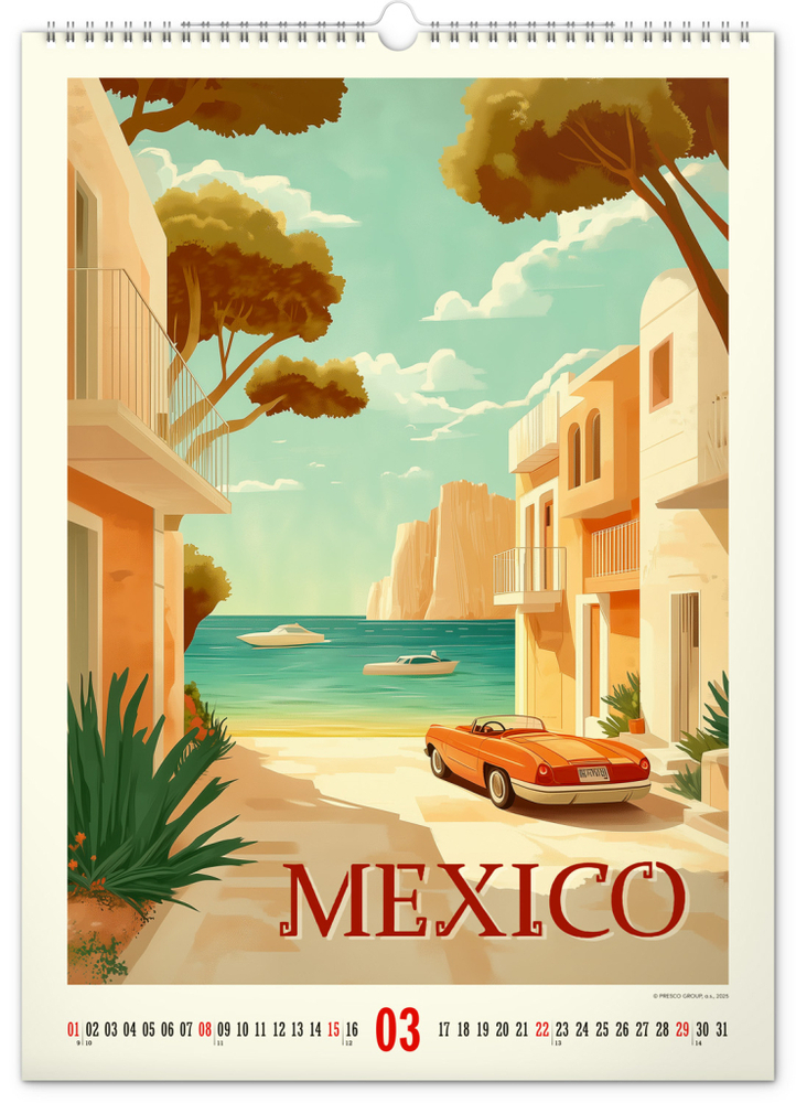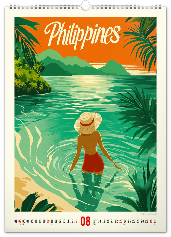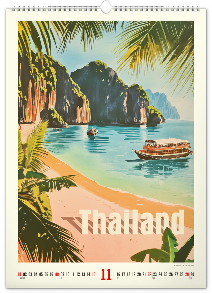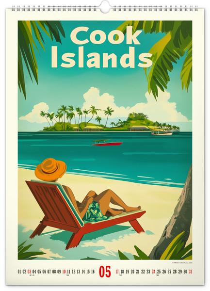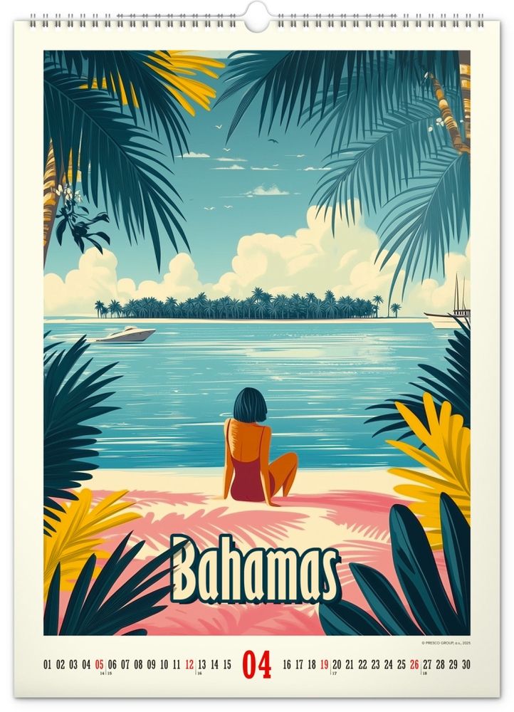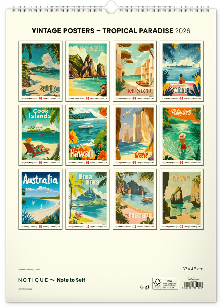 Zasněte se nad krásou tropických rájů s atmosférou starých časů. Nástěnný kalendář doplňuje jednoduché kalendárium na bílém pozadí.