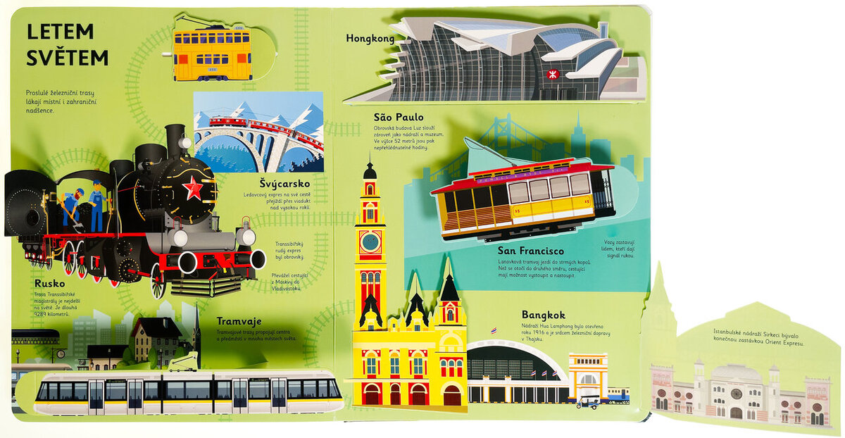 Prozkoumej fascinující svět vlaků díky této interaktivní knize plné pohyblivých prvků a okének! Objev, jak fungovaly parní lokomotivy nebo na jakém principu dnes jezdí moderní magnetické rychlovlaky. Zjisti, jak vlaky překonávají hory a řeky, jak vypadá podzemní metro nebo co všechno přepravují ...