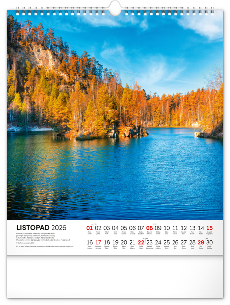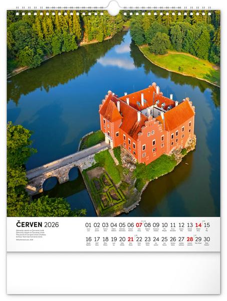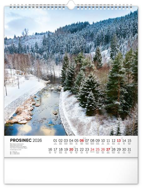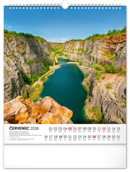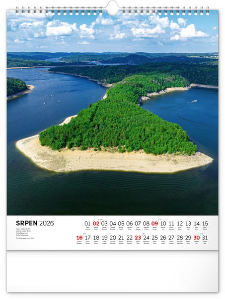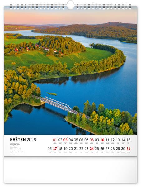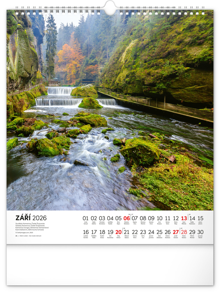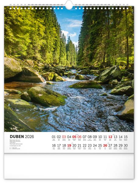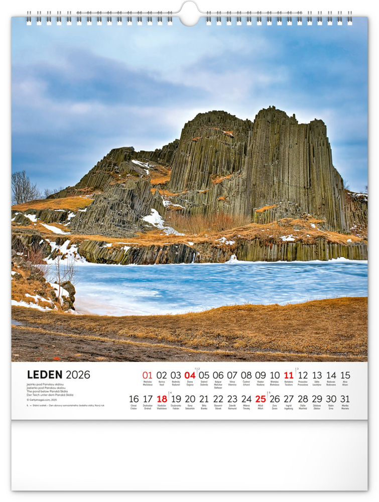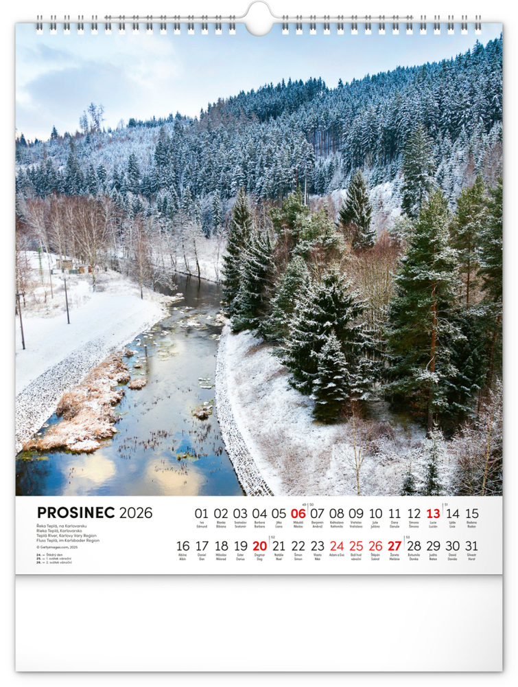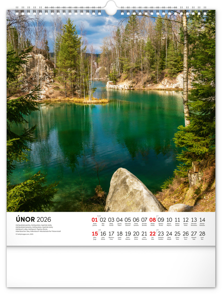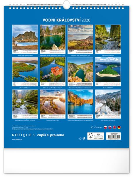Dvanáct fotografií vodních krás z celé České republiky doplňuje jednoduché kalendárium s českými jmény v praktickém formátu.