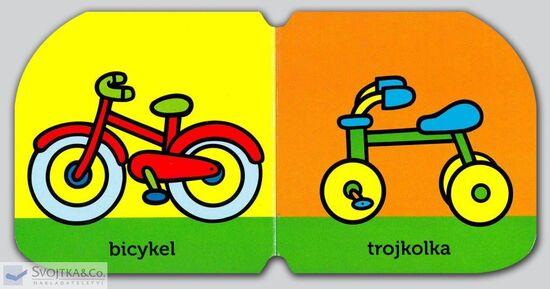 Auto, bicykel, trojkolka, hasičské auto, policajné auto, motorka, skúter, vrtuľník, lietadlo, miešačka, nákladné auto, sanitka, balón, terénne auto, parník, plachetnica, báger, buldozér, autobus, električka, vláčik, vagón- v tejto knižke vaše deti nájdu jednoduché farebné kresby dopravných prostriedkov a naučia sa ich pomenovávať. A naviac, knižka je veľká tak akurát do detskej rúčky!