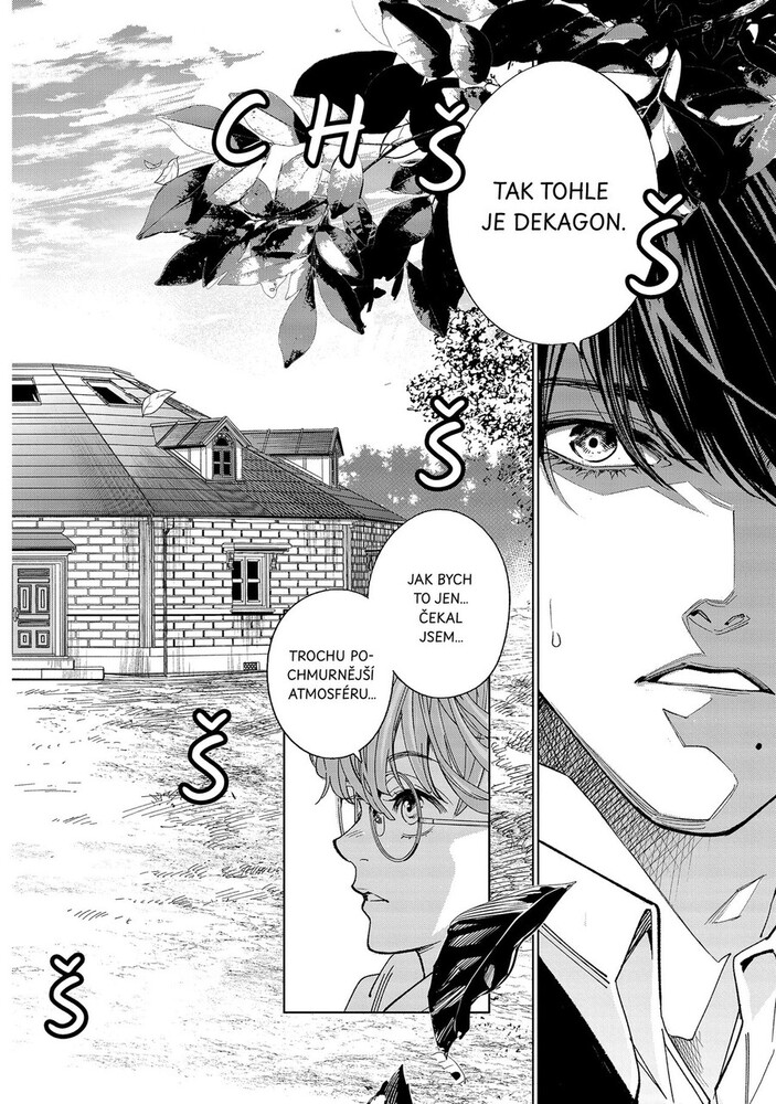 Sedm členů Detektivkového klubu z Univerzity K se vydává navštívit zvláštní desetiúhelníkové sídlo na opuštěném ostrově. Architekt sídla, Seidži Nakamura, před půl rokem na ostrově za záhadných okolností uhořel. Navzdory tomu od něj bývalé člence klubu, která zůstala na pevnině, přichází záhadný ...