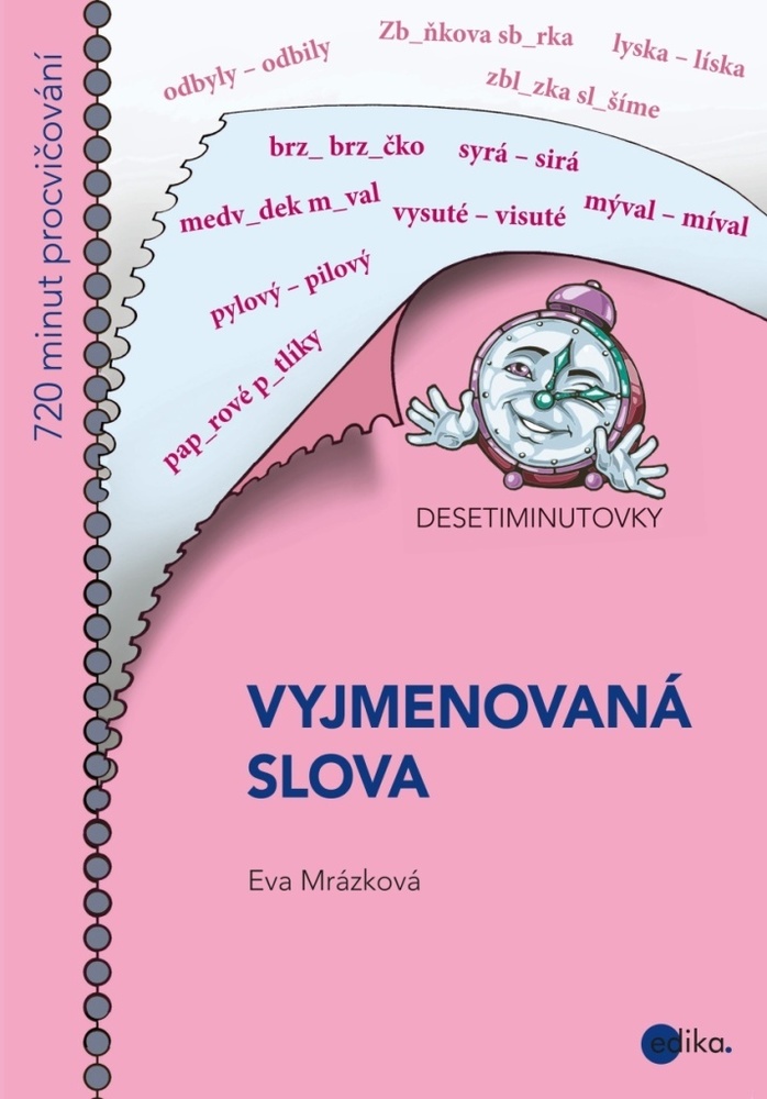 Jsou pro vás vyjmenovaná slova španělskou vesnicí, nebo dokonce noční můrou? Nedostáváte pěkné známky z písemek a diktátů? Nechcete při psaní dlouze dumat nad každým slovem? Co tam jenom napsat, když s měkkým I to vypadá divně, ale s tvrdým Y ještě hůř? Pak jsou Desetiminutovky určeny právě vám! Občas se v knize setkáte s úsměvnou větou, vtípkem nebo se potěšíte veselým obrázkem, ale čeká vás především spousta materiálu na procvičení vyjmenovaných slov. Vyplňujte jeden list po druhém, anebo na přeskáčku. Vytrhejte jednotlivé listy a vyplňujte třeba v tramvaji, anebo je nechejte v knížce, jak je libo. A nakonec si z listů poskládejte třeba lodičku pro mladšího brášku. Vyberte si zkrátka způsob, jaký je vám při učení nejpříjemnější!