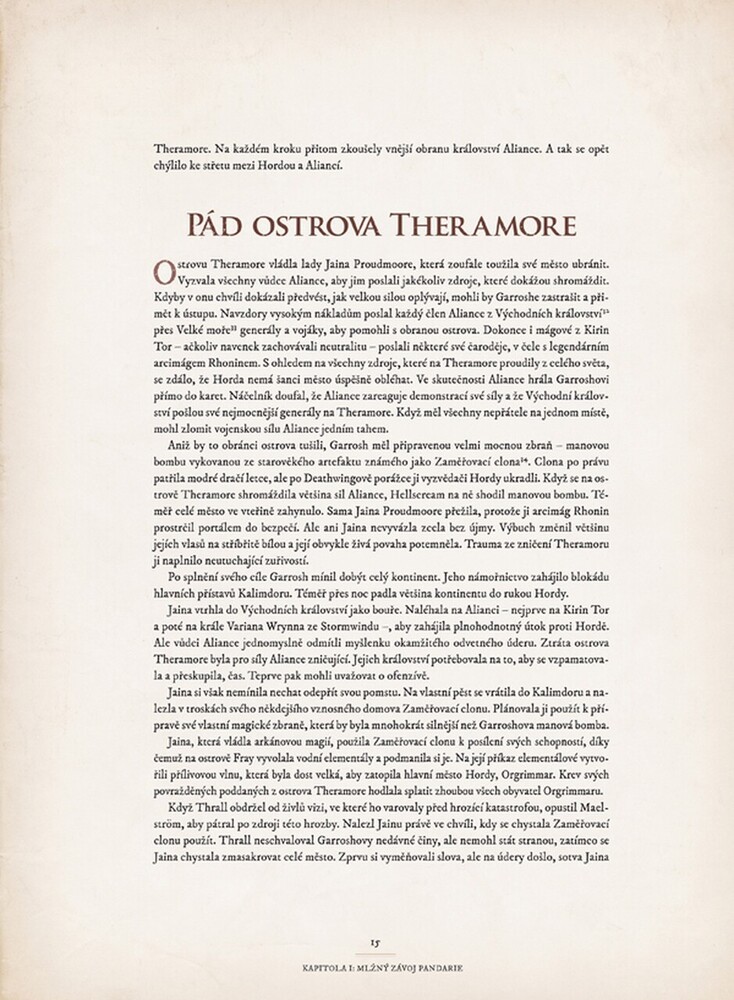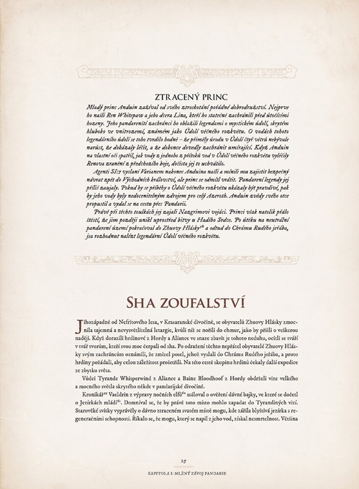 Poznejte dopodrobna historii Azerothu sužovaného Plamennou legií i alternativního Draenoru, objevte krásy Pandarie a taje Stínových zemí, jděte v patách tažení Železné Hordy a staňte se svědky vzestupů i pádů takových hrdinů Hordy a Aliance, jako jsou Sylvanas Windrunner nebo Anduin Wrynn.
