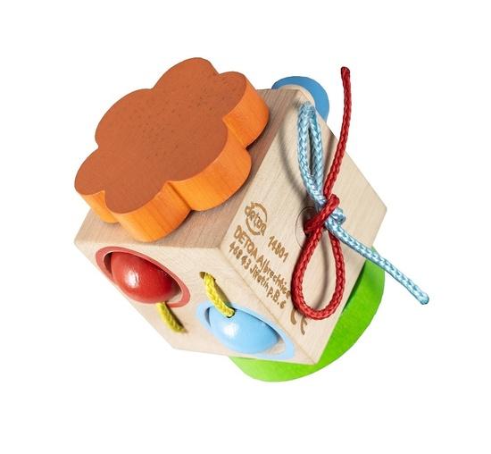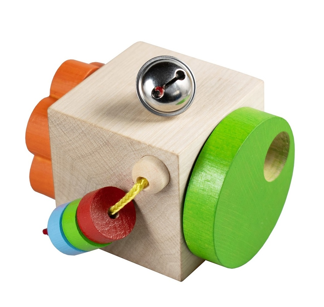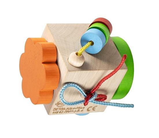 Zábavně vzdělávací kostka rozvíjí manuální zručnost a fantazii dítěte. Výrobek je upevněn na papírové kartě. Varování: nevhodné pro děti do 18 měsíců. Obsahuje malé části. Nebezpečí zalknutí.