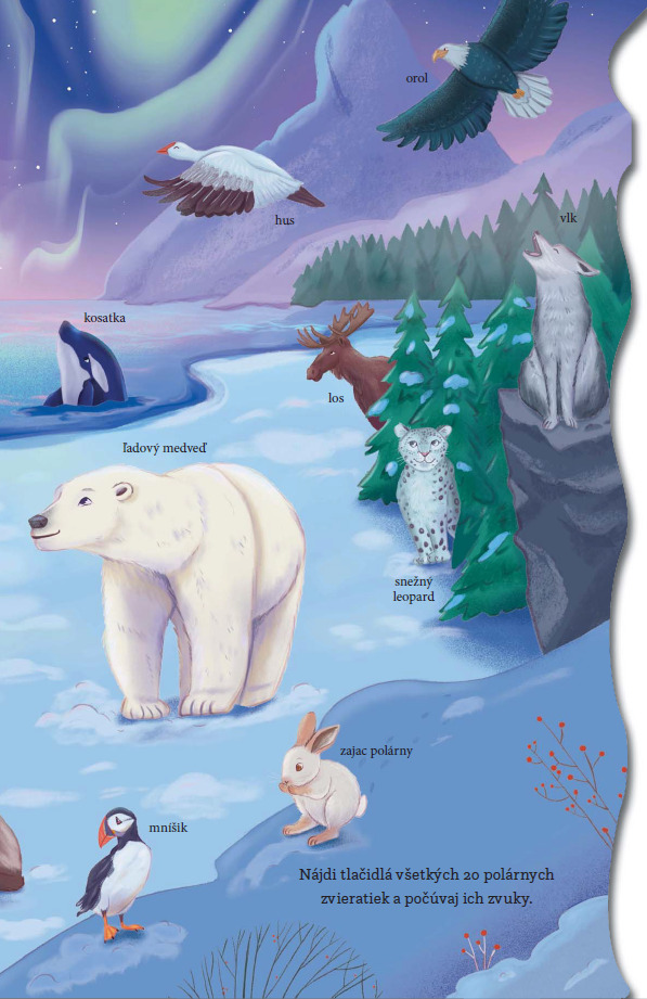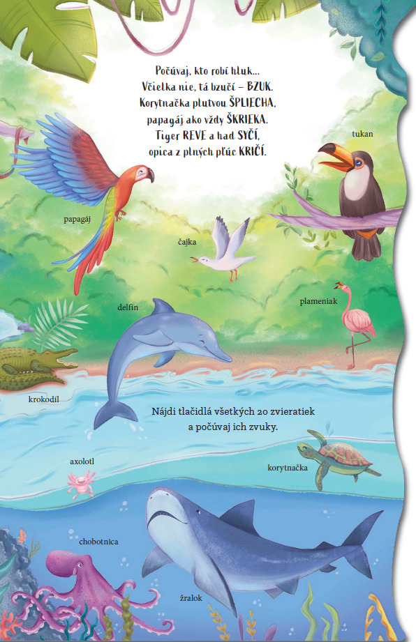 Ako sa medzi sebou bavia zvieratá v džungli, na dvore alebo za polárnym kruhom? A aké zvuky vydáva žirafa, labuť či krab? To všetko sa malí čitatelia dozvedia v knižke Zábavné zvieratá so stovkou zvukových tlačidiel, pomocou ktorých si môžu hlasy svojich nových zvieracích kamarátov prehrať.