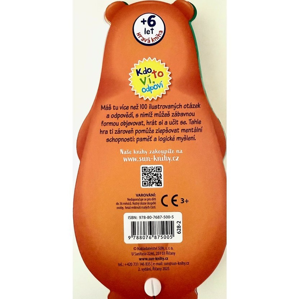 Dětská zvědavost je téměř neomezená – zejména pokud jde o svět zvířat. Kvíz „Kdo to ví, odpoví - Zvířata“ je určen pro malé průzkumníky, kteří se chtějí naučit nejen názvy zvířat, ale také zjistit jejich zvláštní vlastnosti, obydlí, chování a jedinečné schopnosti. Kvíz obsahuje 46 karet, z nichž každá představuje jedno zvíře, od známého lva a delfína až po tak jedinečná zvířata, jako je narval, polární zajíc nebo ptakopysk. Rozšiřuje znalosti o geografii, biologii a chování zvířat, pomáhá rozlišovat realitu od pohádek, protože mnoho otázek obsahuje i odkazy na pohádky nebo filmy. Podporuje zvídavost, povzbuzuje k formulování nových otázek, má také významný účinek na rozšíření slovní zásoby.