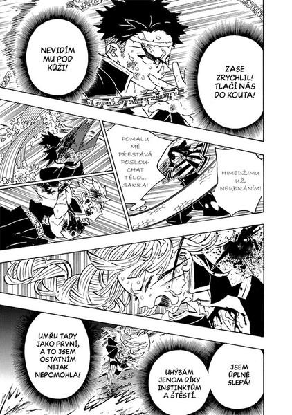Do úsvitu zbývá ještě víc než hodina a Muzan útočí pořád zuřivěji a zuřivěji. Zvládnou ho zbývající Pilíře s pomocí ostatních lovců porazit? A dokáže Tandžiró odolat Muzanově krvi? Zoufalý boj protidémonských jednotek vrcholí!