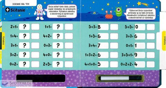Nejde ti sčítanie alebo odčítanie? Potrebuješ precvičovať? Táto interaktívna knižka ti pomôže naučiť sa perfektne sčítať aj odčítať. Napíš svoje výsledky stierateľnou fixkou do prázdnych rámčekov, vytiahni záložky na každej stránke a skontroluj si správnosť odpovedí. Potom môžeš výsledky zotrieť a skúsiť to znova. S pestrými ilustráciami a jednoduchými inštrukciami sa pre teba stane počítanie ozajstnou zábavou!