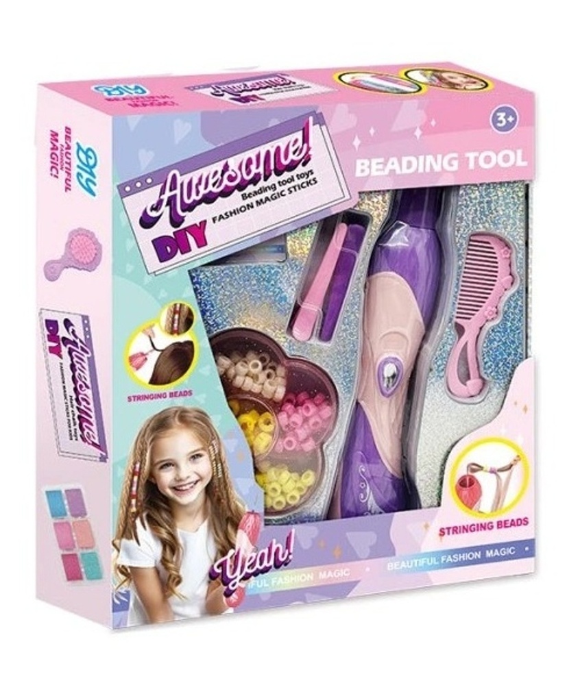 "Jednoduchý pomocník pro zapletení copánků s korálky! S tímto aplikátorem jednoduše zapletete copánky ve vlasech a ozdobíte korálky do vlasů pro ještě krásnější účes. Součástí balení je aplikátor, křebínek, 2 sponky a sada korálků."