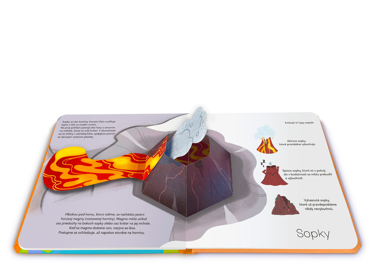 Vitajte, malí geológovia! Ponorme sa spolu do tajov našej planéty a preskúmajme ju pekne vrstvu po vrstve. V tejto veľkej knihe s 3D rozkladačkami nájdete naozaj všetko! Prejdeme sa na sopku, k ľadovcom aj vodopádom. A kto vie, čo všetko na nás na stránkach tejto knihy ešte povyskakuje