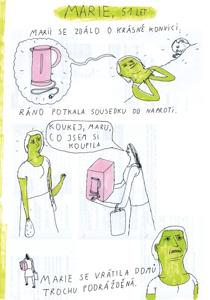 Janek Koza se dívá na ty, které raději přehlížíme, aby nám připomněl, že se od nich vlastně nijak nelišíme. Autor přináší portréty deseti postav, rozechvělých stejně jako jeho kresba, které se potýkají s frustrující prací, nudou, nefunkčními vztahy nebo noční můrou nespavosti. Ve snaze změnit ...