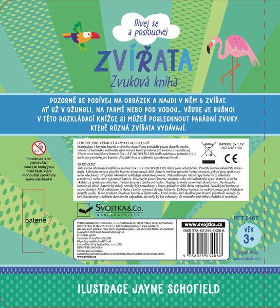 Dívej se, poslouchej a užij si 12 zábavných zvuků! Pozorně se podívej na obrázek a najdi v něm 6 zvířat. Ať už v džungli, na farmě nebo pod vodou… všude je rušno! V této rozkládací knížce si můžeš poslechnout parádní zvuky, které různá zvířata vydávají.