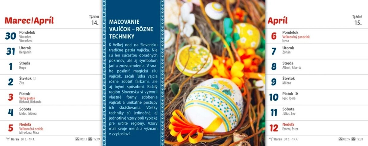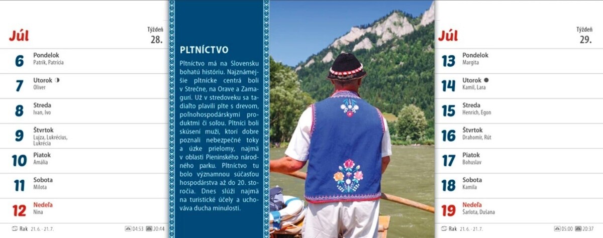 Ľudové zvyky a tradície sú naším národným dedictvom. Zdedili sme ich po našich predkoch a mali by byť uchované z generácie na generáciu. Aby neostali zabudnuté, pripomíname si ich v originálnom rýdzo slovenskom kalendári Zvyky a tradície na Slovensku. Obsahuje dvojtýždňové riadkové kalendárium so slovenskými menami a sviatkami, východy a západy Slnka, fázy Mesiaca.